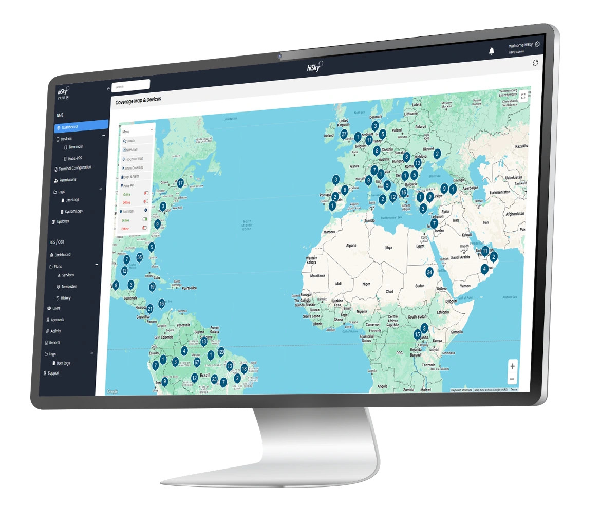 hiSky360 next generation Network Management System (NMS) hosts an operations portal which allows authorized subscribers or re-sellers to monitor and administer the hiSky platform and its various components. Developed inhouse to meet the highest hiSky standards, our NMS provides all the functionality our partners need to manage their global hiSky networks- configuration, monitoring, reporting, analysis, billing, etc. hiSky360 is fully supported by a network operation center and a 24/7 hour help desk.